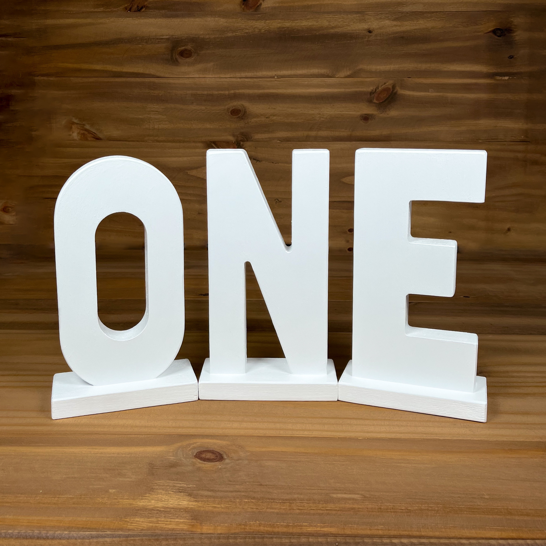 Beyaz Ahşap ONE Yazısı – 1 Yaş Doğum Günü ve Fotoğraf Çekimi Dekoru