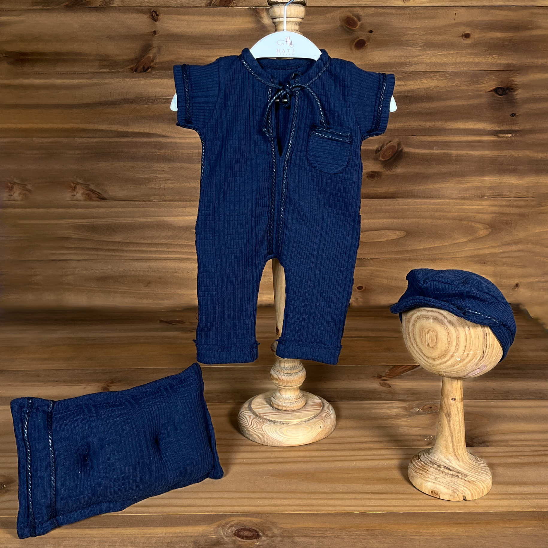 Lacivert Erkek Yenidoğan Fotoğraf Çekim Takımı (3 Parça)