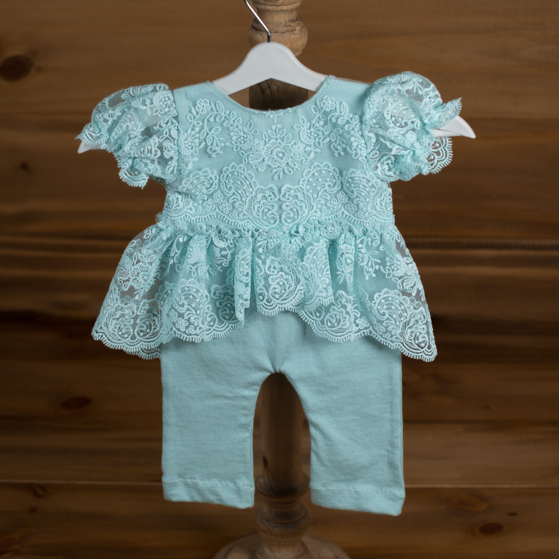 Mint Dantel Detaylı Yenidoğan Fotoğraf Tulum – Kız Bebek Çekimleri İçin Özel Tasarım